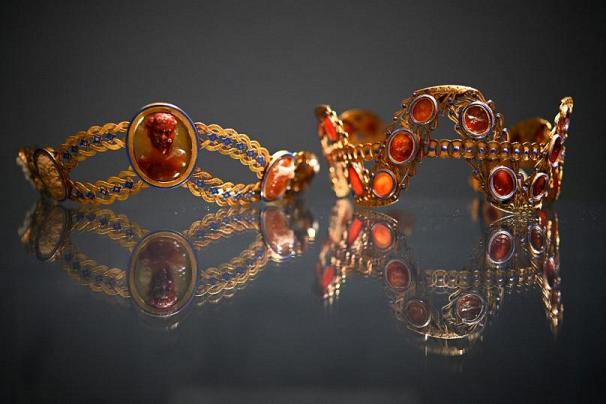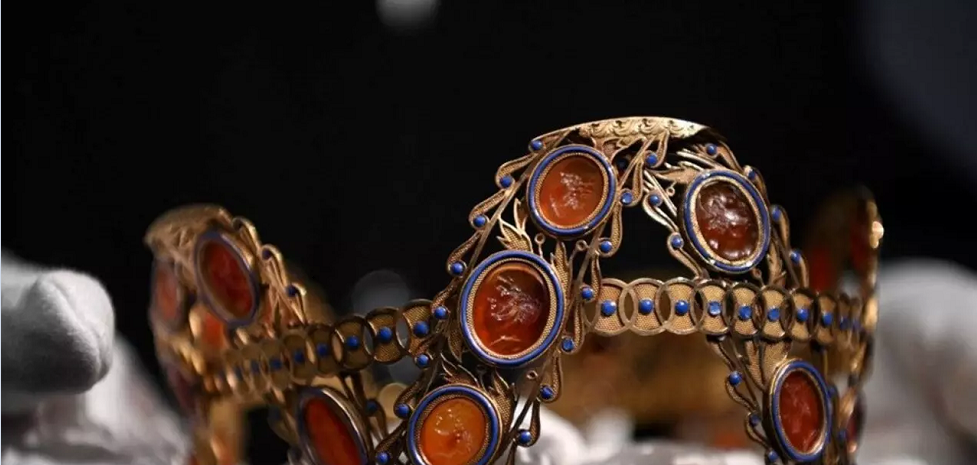 هر دوی این تاجها با سنگهای قیمتی حکاکی شده که احتمالا قدمت آنها به دوران روم و ۱۰۰ سال پیش از میلاد مسیح باز میگردد.