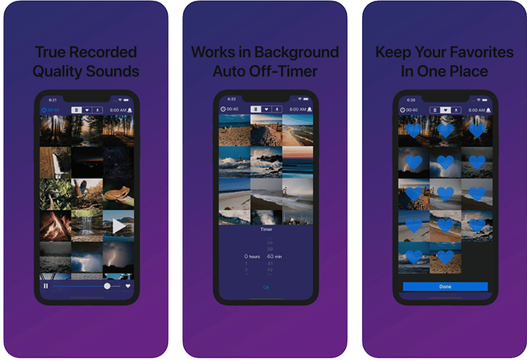 این برنامهها، میتوانند به ذهن شما کمک کنند تا روی صداهای آرامشبخش تمرکز کند و مراقبه را شروع کند. استرس و اضطراب، صداهای درونی تولید شده در ذهن ما هستند که کیفیت خواب ما را تحت تأثیر قرار میدهند. حالت مراقبه (آرامش) تولید شده توسط صداها، به آرام کردن ذهن شما کمک میکند.