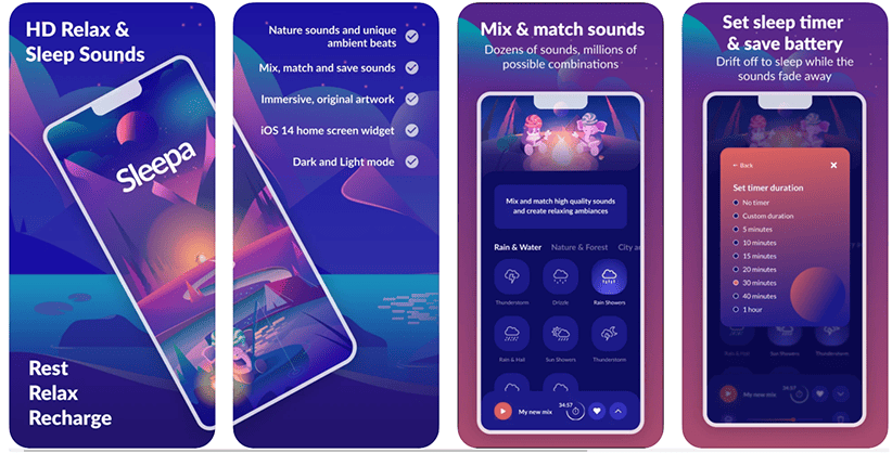 Sleepa برنامهای است که به مبارزه با بیخوابی کمک میکند و طیف گستردهای از موسیقی متنهای آرامشبخش با کیفیت بالا دارد. ویژگی زنگ هشدار این اپلیکیشن، به شما امکان میدهد تا تایمر خود را تنظیم کنید و همچنین به طور خودکار برنامه را خاموش کنید. برای کاهش بیخوابی، میتوانید حداکثر ۳۲ موسیقی متن را انتخاب کنید. استفاده از نسخه پایه این اپلیکیشن رایگان است، اما برای دسترسی به ویژگیهای پیشرفته آن به خرید اشتراک نیاز دارید.