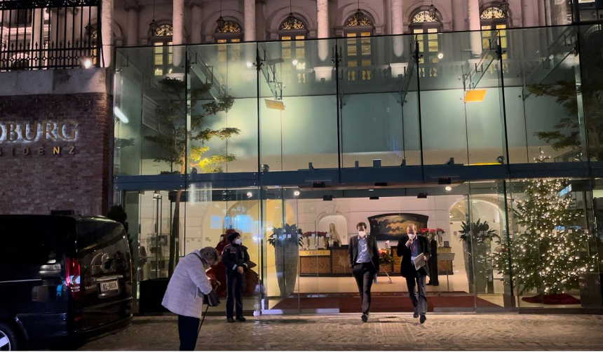 هتل کوبورگ و ماریوت درست مقابل یکدیگر در دو سوی یک خیابان دارند. هیاتهای گروه 1+4 پس از جلسات با هیات ایرانی در هتل کوبورگ، راهی آن سوی خیابان شده تا با هیات آمریکایی، درباره آخرین وضعیت گفتوگوها رایزنی کنند.