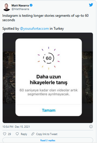 گفتنی است که یکی از کاربران اینستاگرام در توئیتی به قابلیت جدید این پلتفرم اشاره کرده و نوشت:" براساس گزارشات، کاربرانی در ترکیه میتوانند از این ویژگی استفاده کنند".
