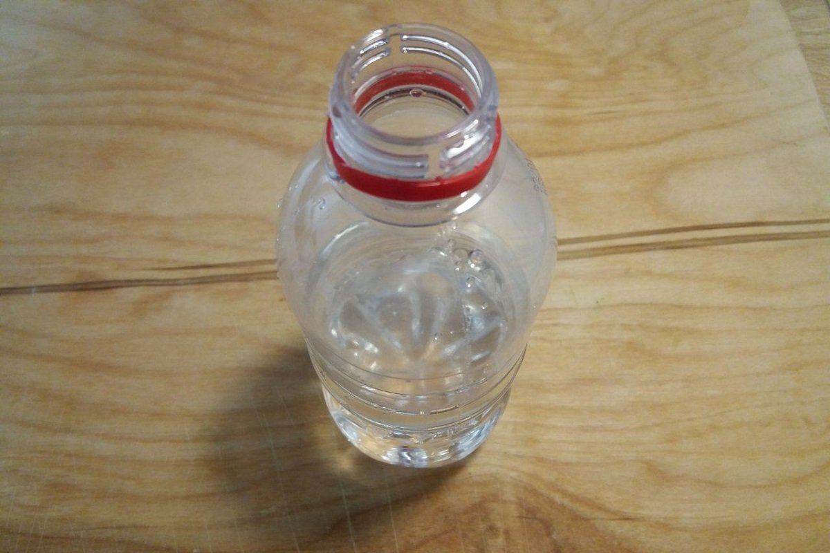 یک بطری پلاستیکی کوچک را تا نصفه با آب پر کنید.