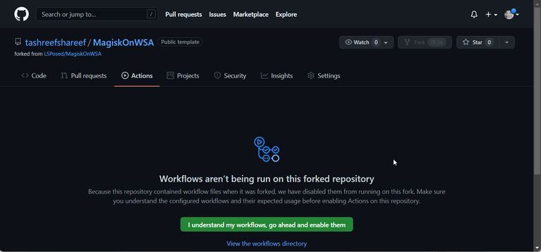 اگر پیام Workflows aren’t being run on this forked repository را مشاهده کردید، روی گزینه I understand my workflows, go ahead and enable them کلیک کنید.