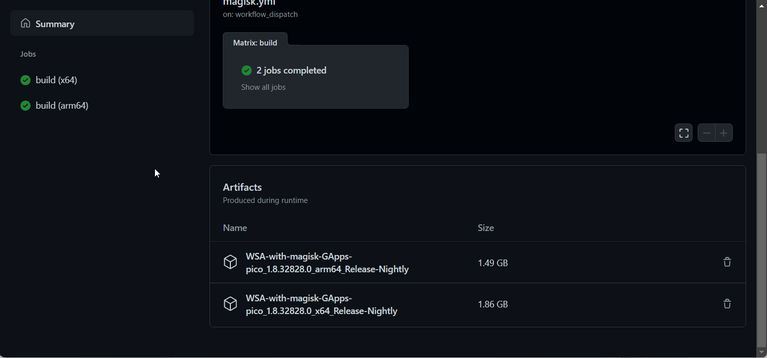 در بخش Artifacts به سمت پایین اسکرول کنید تا نسخههای ARM و X64 را ببینید.