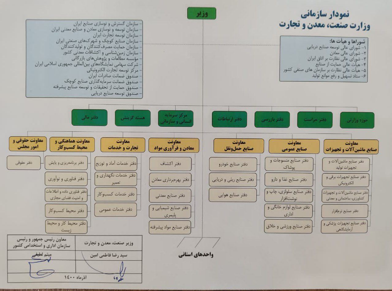 موج تغییرات چارت سازمانی بین معاونتهای وزارت صمت در جریان است و از ابتدای استقرار دولت جدید ادامه داشته است. با توجه به تاکید فاطمی امین بر تغییرات بیشتر در ساختار سازمانی وزارت صمت این روند در سایر معاونتها هم ادامه دار خواهد شد.