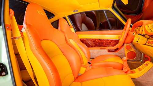 پورشه 911 توربو اس موردنظر ما یک نمونه شخصی سازی شده، محسوب می شود که فضای داخل آن تم های جذابی از زرد وانیلی و نارنجی دارد.