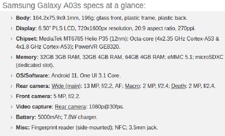 برخی از سازندگان تلفن همراه، آنچه از یک پرچمدار انتظار داریم را مجدد تولید میکنند. در حالی که برخی دیگر تلاش میکنند تا پایینترین بودجه این کار را انجام دهند.Samsung Galaxy A۰۳s از نوع دوم میباشد. این گوشی، یکی از ارزانترین گوشیهای سامسونگ میباشد که با یک صفحه نمایش بزرگ ۶.۵ اینچی، یک دوربین سه گانه و یک باتری بزرگ با شارژ نسبتا سریع، این محصول را به یک پیشنهاد جذاب ارزان قیمت تبدیل کرده است.