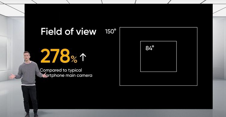 در طول این رویداد ریلمی از فناوری جدید دوربین گوشیهای هوشمند خود پرده برداشت. GT۲ Pro با اولین دوربین فوق عریض ۱۵۰ درجه در جهان عرضه میشود. همانطور که از نام آن پیداست، این لنز میدان دید ۱۵۰ درجه را به کاربران ارائه میدهد که ۲۷۸ درصد بیشتر از دوربینهای معمولی گوشیهای هوشمند اولیه میباشد و میدان دید ۸۴ درجه دارند. شایان ذکر است، اولین بار در جهان است که حالت Fisheye بر روی یک گوشی هوشمند ایجاد شده و عمق میدان بسیار طولانی را برای عکاسی خلاقانهتر ایجاد میکند.