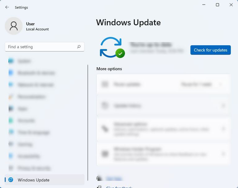 در ادامه روی گزینه Check for updates کلیک کنید. با این کار، سیستم‌تان اینترنت را برای وجود نسخه جدید ویندوز 11 بررسی می‌کند و در صورت وجود، می‌توانید آن را روی دستگاه‌تان نصب کنید.