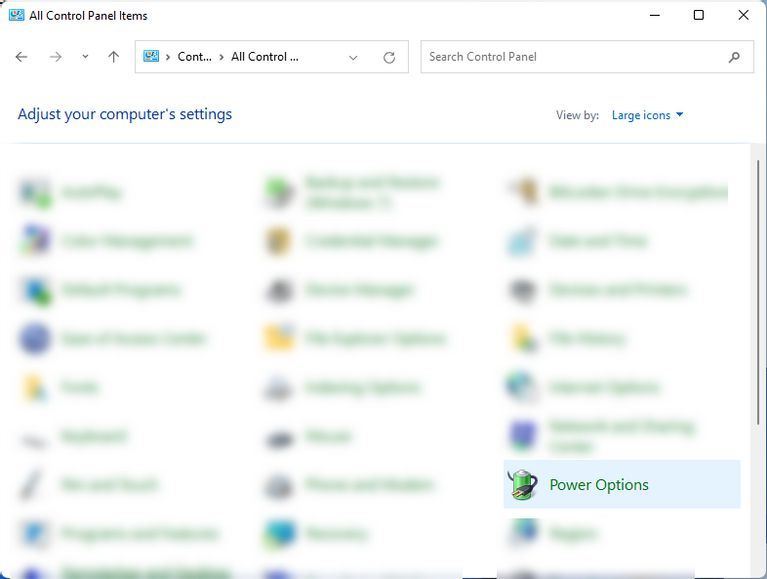 در ادامه روی گزینه Power Options در منوی کنترل پنل کلیک کنید.