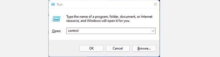 با فشردن کلیدهای ویندوز و R، پنجره Run را باز کنید و در ادامه پس از تایپ کلمه Control، کلید Enter را بزنید.