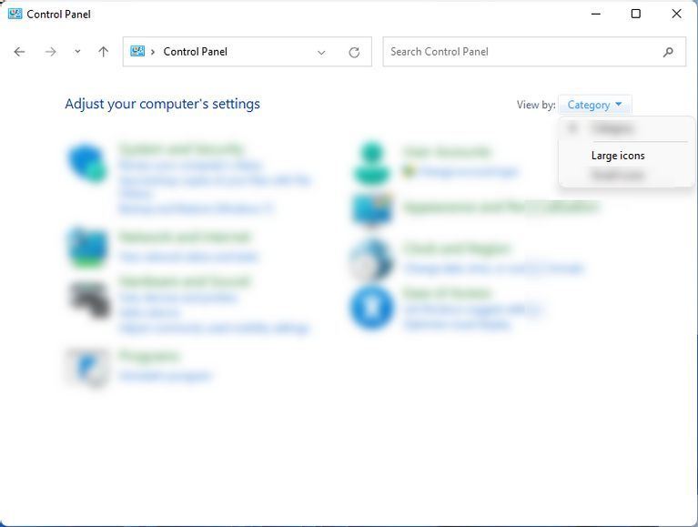 در پنجره کنترل پنل، روی گزینه کشویی کنار View by کلیک کرده و گزینه Large Icons را انتخاب کنید.