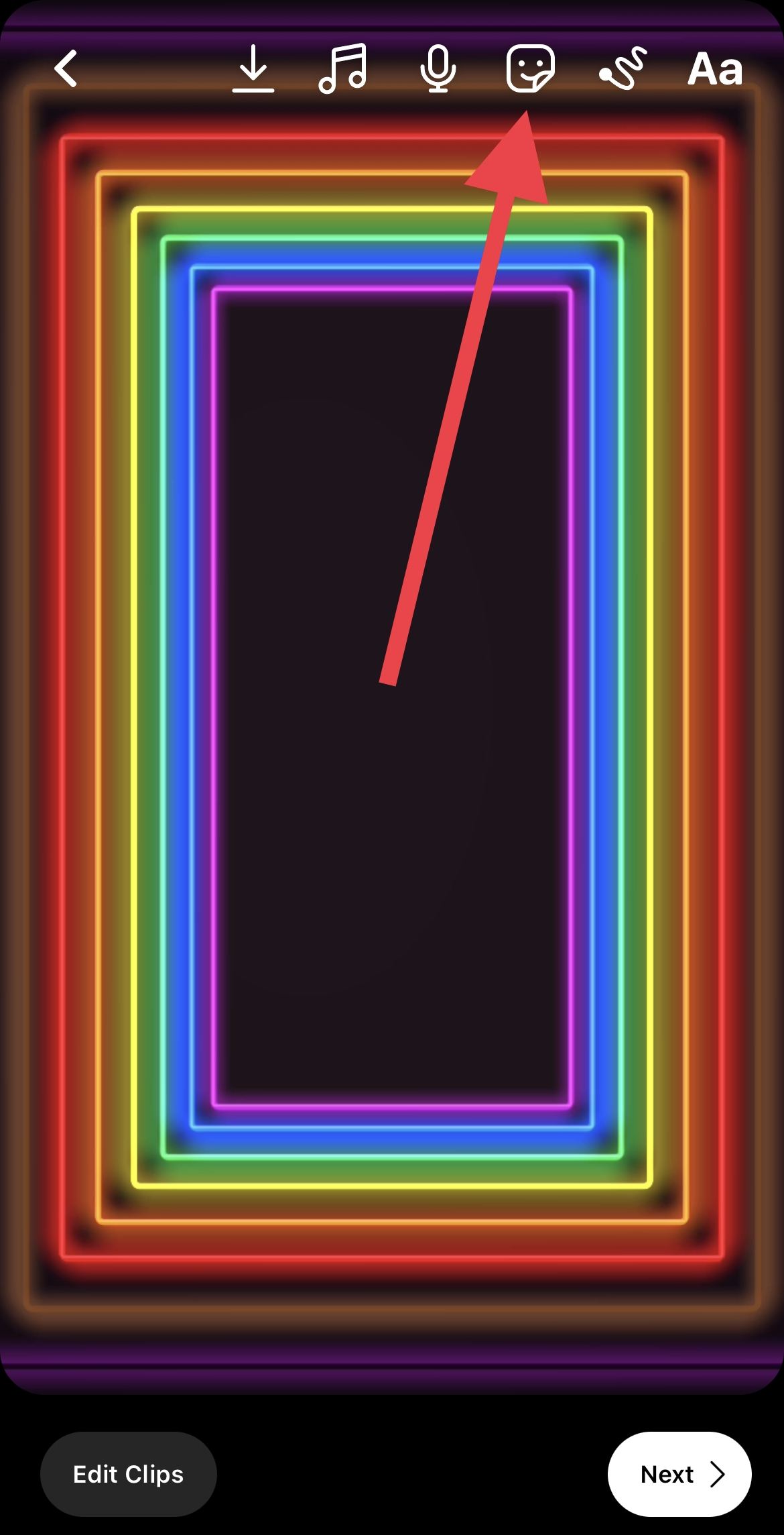 ۵. در گزینه‌های ویرایش در بالا، روی نماد استیکر ضربه بزنید.