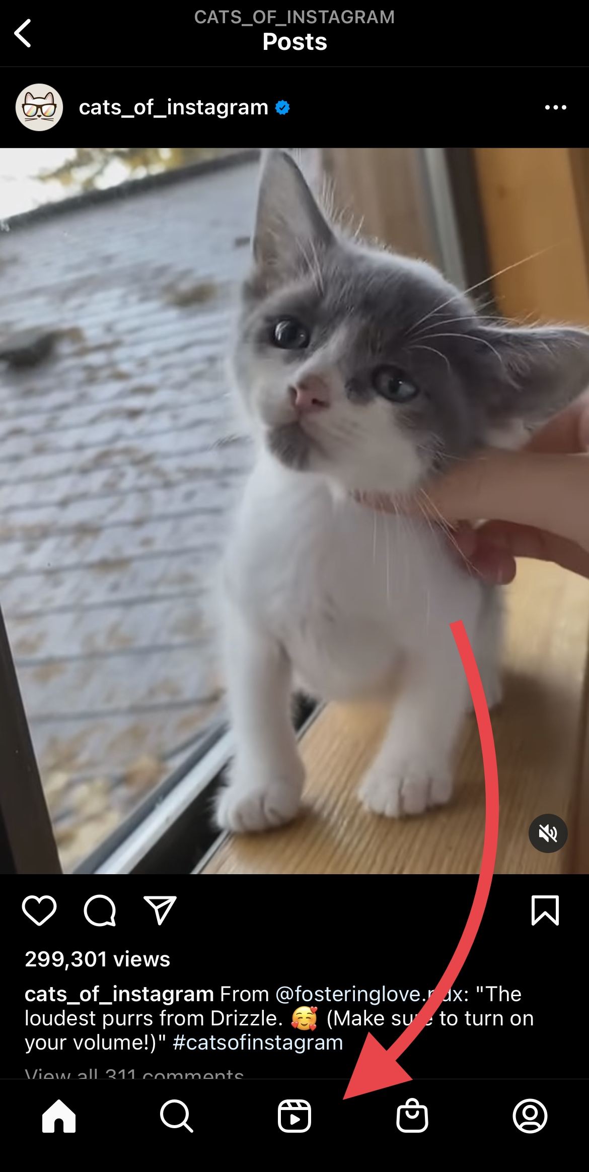 ۱. به نماد Reels در پایین و وسط صفحه خود ضربه بزنید.