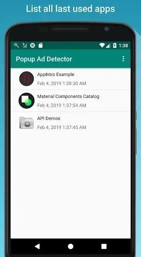 با استفاده از این برنامه به محض اینکه تبلیغات برای شما در صفحه اصلی، صفحه قفل، نوار نوتیفیکیشنها و یا روی هر اپ دیگری نمایش داده شد، Popup Ad Detector اپلیکشین باعث و بانی تبلیغات را به شما نمایش خواهد داد. از این طریق میتوانید به راحتی نرمافزار متخلف را شناسایی کرده و اقدام به حذف آن کنید.