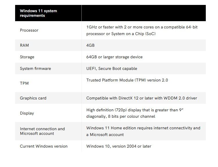ویندوز ۱۱ یک ارتقاء رایگان است، اما برای ارتقا نیاز به سیستم قوی تری نسبت به ویندوز ۱۰ داریم. مایکروسافت ویندوز ۱۱ را ایمنترین ویندوز نامیده است. Trusted Platform Module 2.0 به معنی ماژول پلتفرم مطمئن، که با نام TPM 2.0 شناخته میشود، یکی از الزامات ویندوز ۱۱ است. برای نصب دستی ویندوز ۱۱ بر روی سیستمهای ناسازگار، نیز راههایی وجود دارد، این راهها سبب میشوند، که مجبور به کنار گذاشتن بروز رسانیهای آینده ویندوز ۱۱ از طریق Windows Update بشویم.