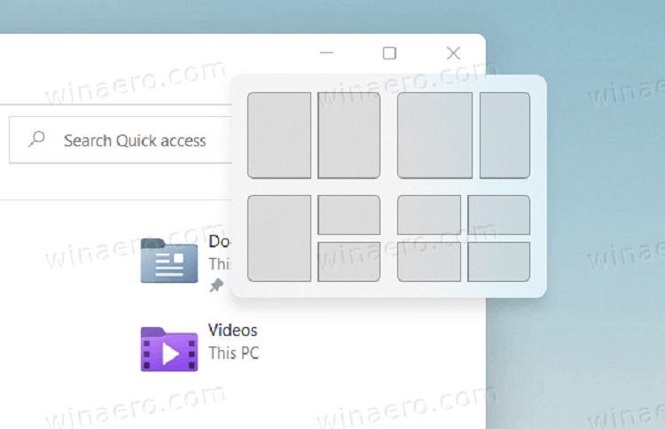 یکی دیگر از ویژگیهای قابل توجه، window snap layouts میباشد. امکان کنار هم قرار دادن پنجرهها و تقسیم صفحه به چند بخش مختلف میباشد. تغییر شفافیت یا transparency effect نیز یکی دیگر از ویژگیهای جذاب میباشد. طراحی متمرکز بر شفافیت " ransparency-focused design " که برای اولین بار در ویندوز ویستا معرفی شد، سرانجام به بلوغ رسیده است.