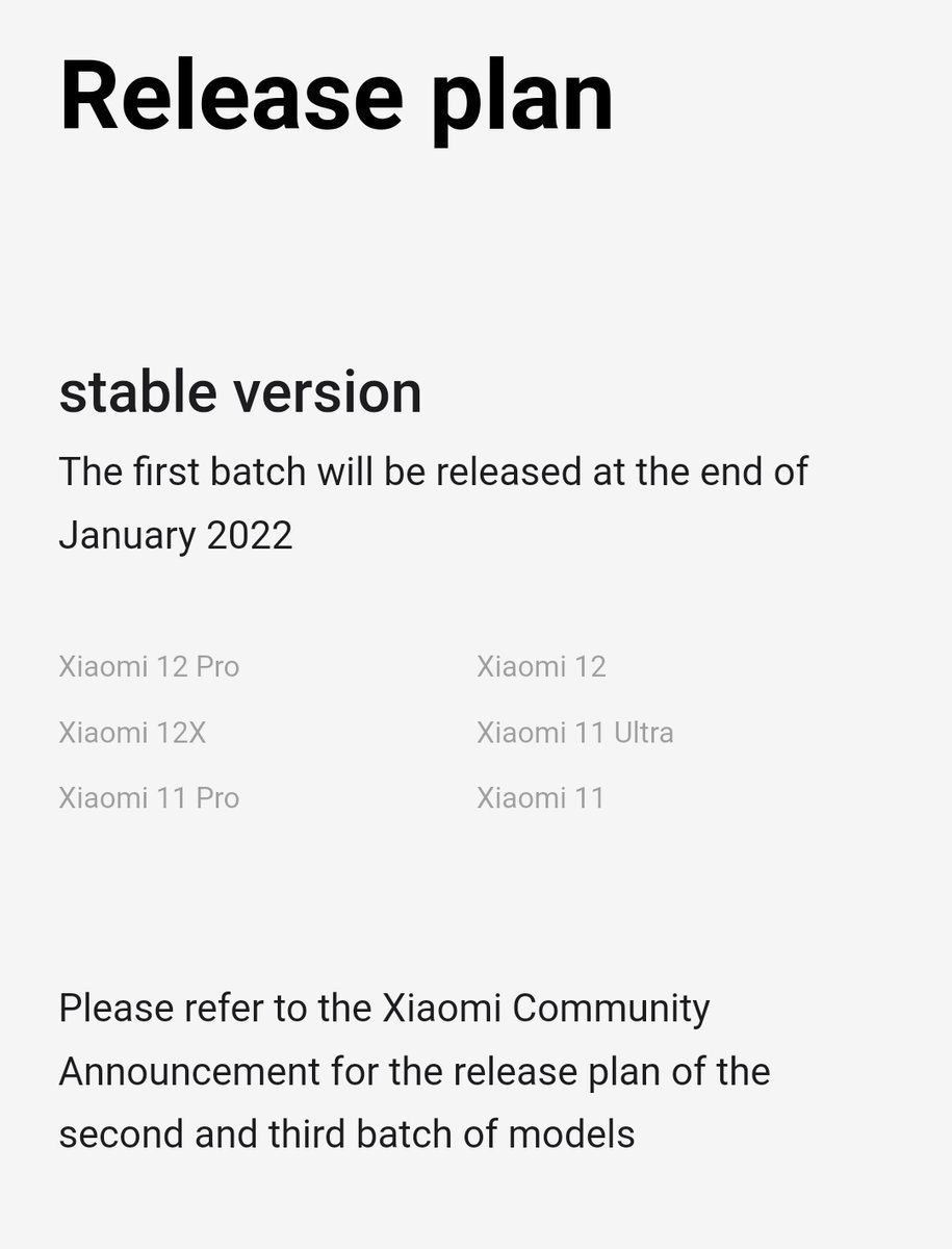 شیائومی میگوید نسخه بعدی سیستم عامل ساعتهای هوشمند این شرکت نیز با نام MIUI for Watch عرضه میشود. این سیستم عامل اختصاصی قبلا بدون نام منتشر میشد. این شرکت همچنین وعده داده که انتشار MIUI 13 را از انتهای ماه ژانویه سال ۲۰۲۲ (اوایل بهمن) آغاز میکند. این بهروزرسانی علاوه بر سری شیائومی ۱۲ ابتدا در اختیار می ۱۱، می ۱۱ پرو و می ۱۱ اولترا قرار میگیرد.