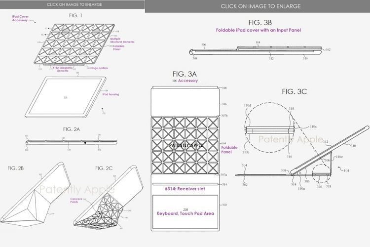 اختراع جدید اپل، سطحی با الگوی هندسی است میتواند به چندین شکل تبدیل شود. این ویژگی سبب میشود تا کاربران به راحتی بتوانند قاب را خم کنند و برای مشاهده راحتتر دستگاه خود را در هر زاویه و جهتی نگه دارند.