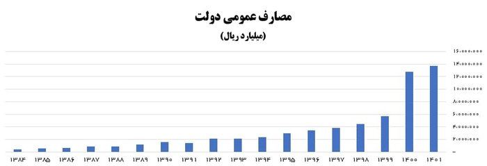 این در حالی است که دولت روحانی در بودجه سال آخر خود مصارف عمومی خود را بیش از ۲ برابر افزایش داد (۱۲۴ درصد!).