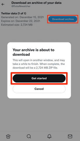 پس از آن، شما باید گزینه دانلود تاریخچه را با انتخاب کرده و سپس با وارد کردن رمز عبور و تأیید حساب ، توئیتهای خود را در رایانه دانلود کنید.