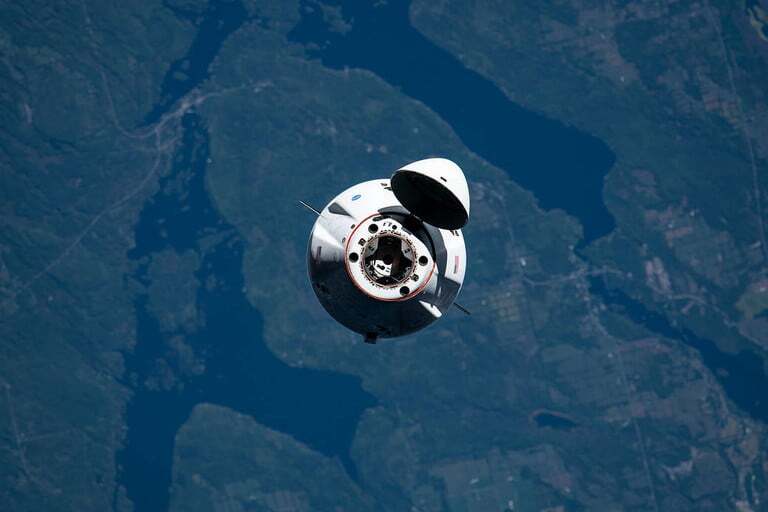 یکی دیگر از عکسهای حیرتانگیزهای ایستگاه فضایی تصویری است که فضاپیما اسپیس ایکس با مخروط دماغهاش برای لنگر انداختن به ایستگاه فضایی نزدیک میشود. این تصویر، منظرهای جالب از اژدهای باری اسپیسایکس را نشان میدهد و جالب است که بدانید سیاره زمین در پایین فضاپیمای اسپیس ایکس قابل مشاهده است.