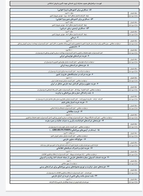 در ادامه، میتوانید آخرین تغییرات در سرفصلهای فروش ارز بابت مصارف ارز خدماتی توسط صرافیها را مشاهده کنید: