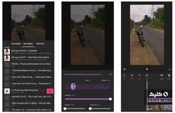 ۵- پس از انتخاب آهنگ موردنظر، آن را برش دهید تا با عکس یا ویدئو همخوانی داشته باشد. در این مرحله بهتر است آهنگ اصلی ویدئو را قطع یا Mute کنید.