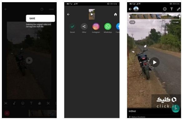شما میتوانید بلافاصله پس از اتمام فرایند ذخیرهسازی، ویدئوی موردنظر را در استاتوس واتساپ و شبکههای اجتماعی دیگر به اشتراک بگذارید.