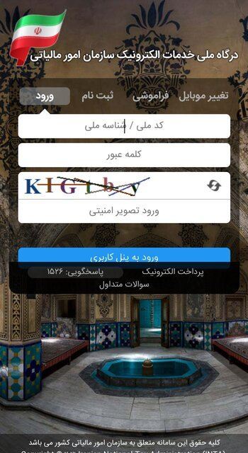 ۱) ورود به درگاه خدمات الکترونیک مالیاتی و وارد کردن کد ملی و رمز عبور در صورت ثبتنام در این درگاه