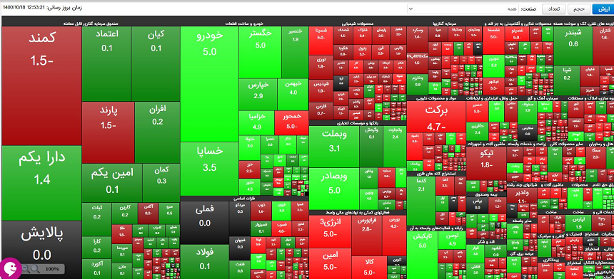 همچنین شاخص کل با معیار هموزن امروز با کاهش 337 واحد به رقم 359 هزار و 134 واحد رسید.ارزش بازار در بورس تهران به بیش از 5 میلیون و 460 هزار میلیارد تومان رسید.