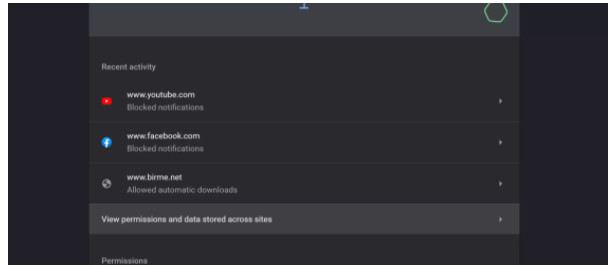 3-روی تنظیمات سایت کلیک کنید و روی گزینه " View Permissions’ and data stored across sites" کلیک کنید.