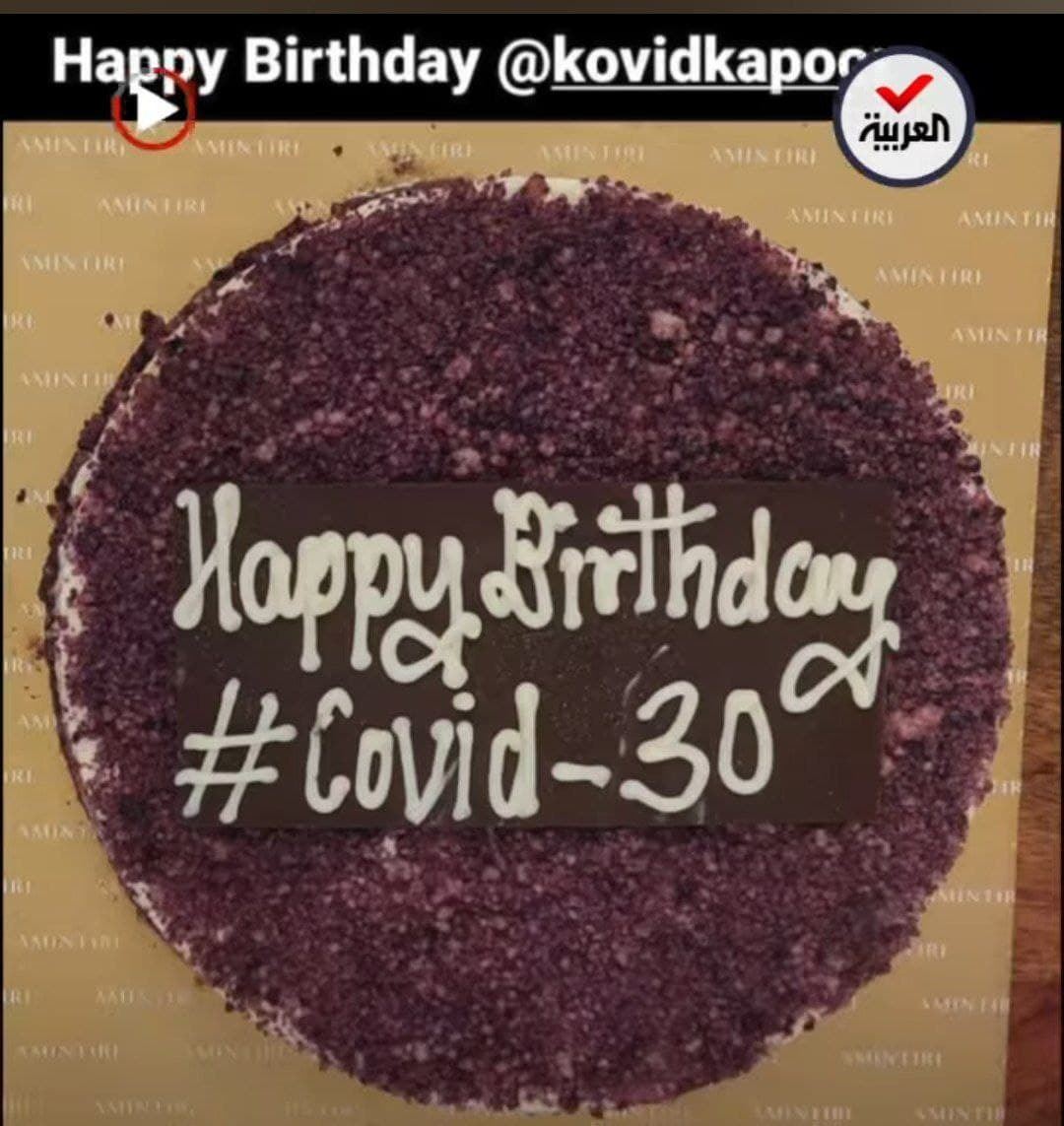 در ادامه، تصویری از کیک تولد 30 سالگی کووید کاپور را مشاهده میکنید که دوستانش برای شوخی با او نامش را به جای حرف k با c و به شکل covid نوشته اند.