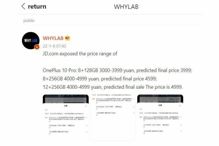 به گزارش موبوایران، ری وانپلاس ۱۰ هنوز رسما معرفی نشدهاند اما شرکت چینی هر چند وقت یکبار اطلاعاتی را در رابطه با آنها منتشر میکند. یکی از این اطلاعات، قیمت وانپلاس ۱۰ پرو است که البته توسط خود شرکت فاش نشد اما به لطف شرکت تجاری الکترونیکی JD.com توانستیم از آن مطلع شویم.