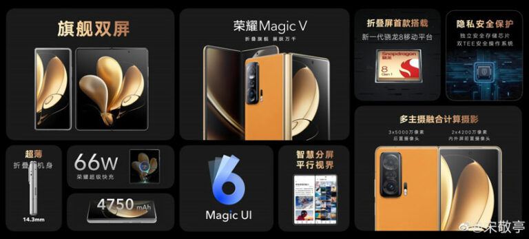 ساعاتی قبل آنر از اولین گوشی تاشوی خود با نام مجیک V رونمایی کرد که همراه با چیپست اسنپدراگون ۸ نسل ۱ راهی بازار خواهد شد.