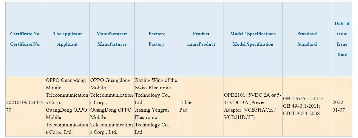 اوپو بهقدری درگیر گوشی تاشو Find N بوده که فرصتی برای عرضهی اولین تبلتش، یعنی اوپو پد (Oppo Pad) نداشته است. بهنظر میرسد این تبلت بهزودی رونمایی شود؛ زیرا اخیرا تأییدیهی گواهینامه 3C را دریافت کرده است.