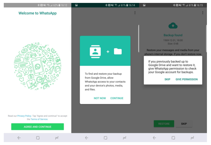 بسیار عالی، از همه چیز بکاپ گرفتهاید و حالا خیالتان راحت است. اگر میخواهید گوشی خود را عوض کنید، نیاز به نصب مجدد واتس اپ دارید. بعد از دانلود و نصب، نوبت به بازگردانی فایلهای پشتیبان میرسد. نحوه انجام این کار به شرح زیر است: