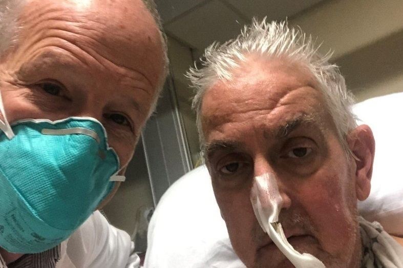 تصویر دیوید بنت (سمت راست) در کنار پزشک جراح خود