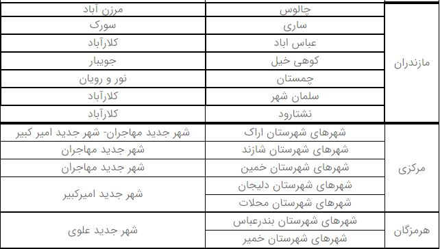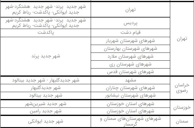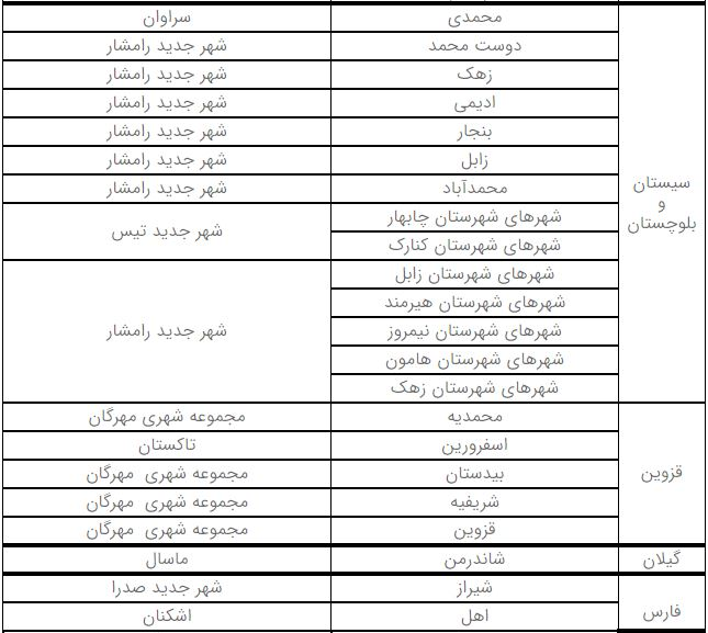 مشروح نام شهرهای اضافه شده به سامانه وزارت راه و شهرسازی به شرح ذیل است: