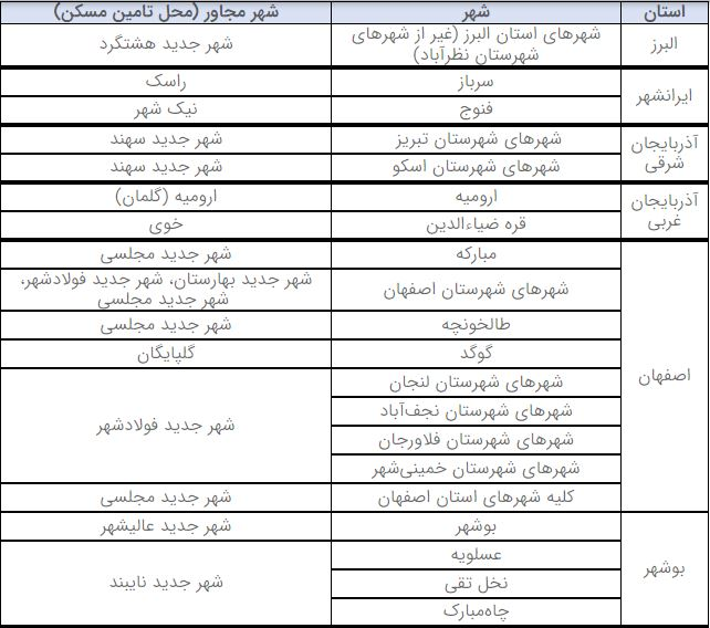 بر این اساس، تامین مسکن متقاضیان در شهر مورد تقاضا و یا در نزدیک ترین شهر مجاور که امکان تامین زمین در آن فراهم باشد، صورت می پذیرد.