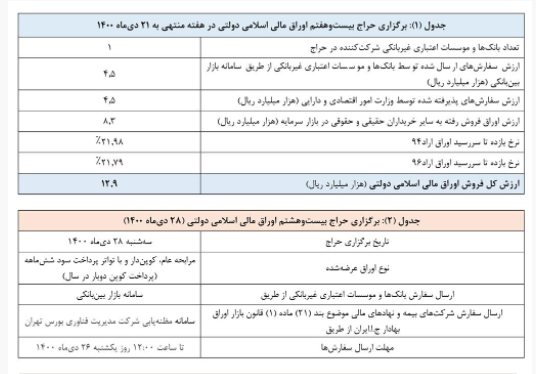 نتیجه بیست و هفتمین حراج اوراق مالی اعلام شد