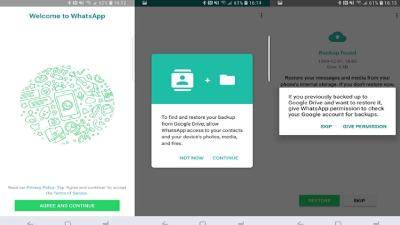 بسیار عالی، از همه چیز بکاپ گرفتهاید و حالا خیالتان راحت است. اگر میخواهید گوشی خود را عوض کنید، نیاز به نصب مجدد واتس اپ دارید. بعد از دانلود و نصب، نوبت به بازگردانی فایلهای پشتیبان میرسد. نحوه انجام این کار به شرح زیر است: