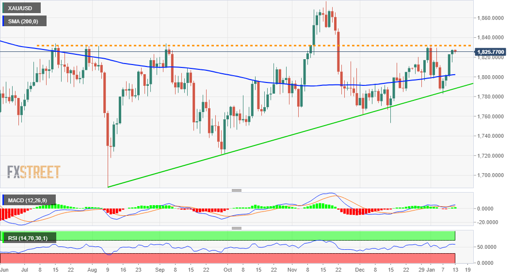 از منظر فنی حرکت صعودی طلا هم اکنون درست پیش از محدوده 1830 تا 1832 دلار متوقف شده است. این مانع برای معماله گران صعودی طلا اهمیت بسیاری دارد و طلا برای آنکه به روند صعودی خود ادامه دهد باید از ان عبور کند.