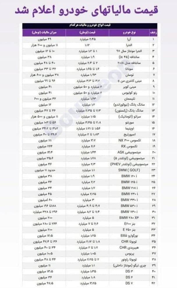 میزان مالیات جدید خودروهای لوکس چقدر است؟+جدول