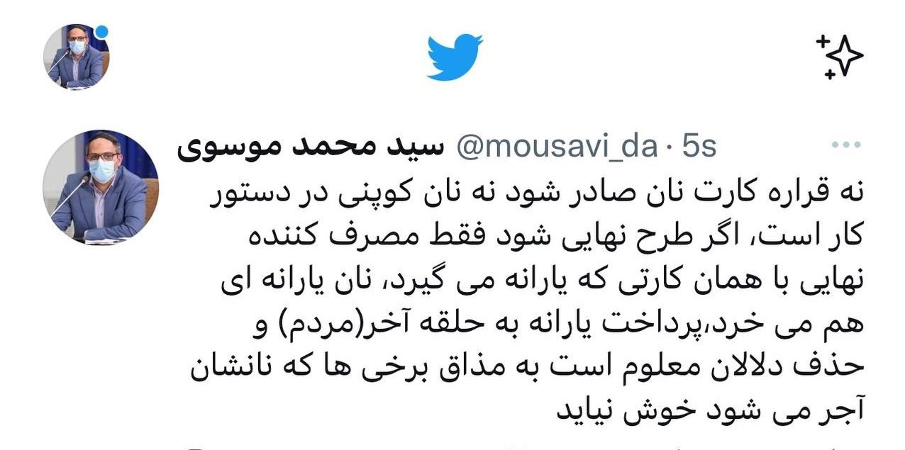 سید محمد موسوی در ادامه یادآور شده است که پرداخت یارانه به حلقه آخر (مردم) و حذف دلالان؛ معلوم است به مذاق برخی ها که نانشان آجر می شود، خوش نیاید.