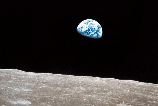 آپولو ۸ اولین ماموریت سرنشین دار به ماه به ماه بود که در ۲۱ دسامبر ۱۹۶۸ انجام شد. هدف آپولو ۸ چرخش به دور ماه و جستجوی مکانهای فرود احتمالی برای مأموریتهای آینده بود. هنگامی که فضانوردان از سمت تاریک ماه بیرون آمدند متوجه یک کره آبی یعنی زمین شدند. این یک مأموریت شناسایی بود و قرار نبود که خدمه از زمین عکس بگیرند، اما فضانوردان از این منظره به اندازهای شگفت زده شدند که از آن عکس گرفتند. این عکس که اکنون به عنوان «Earthrise» شناخته میشود به یکی از مشهورترین تصاویر تاریخ تبدیل شده است.