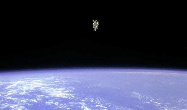 در سال ۱۹۸۴، ناسا مأموریتی را برای آزمایش نمونه اولیه جت پک فضایی برای فضانوردان انجام داد. در فوریه همان سال، بروس مک کندلس فضانورد برای اولین بار با شاتل فضایی «چلنجر» به فضا رفت تا این جت پک را آزمایش کند. پس از چند مرحله آزمایش در داخل فضاپیما، این فضا نورد جت پک را در فضای خالی آزمایش کرد؛ بنابراین در ۷ فوریه ۱۹۸۴ مک کندلس به اولین انسانی تبدیل شد که بدون هیچ نقطه اتصالی به فضاپیما در فضا راهپیمایی کرد.