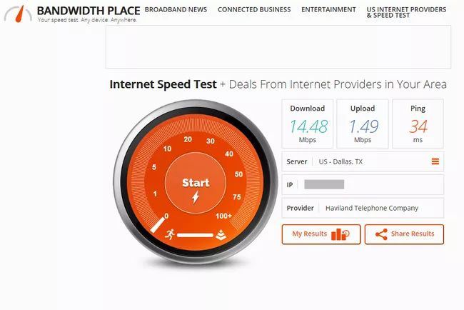 یکی دیگر از وب سایت های تست سرعت که رابط کاربری سادهای دارد و اطلاعات مفیدی در اختیارتان قرار میدهد، Bandwidth Place نام دارد. این وب سایت با HTML5 کار میکند، بنابراین گزینه مناسبی برای مرورگرهای موبایل به حساب میآید.