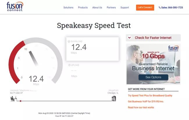 سرورها و موتور این سرویس توسط Ookla تامین میشود، بنابراین مشابه Speedtest.net است، هرچند این سرویس محبوبیت خاص خودش را دارد. برای تست سرعت اینترنت توسط وب سایت Speakeasy تنها کافیست روی گزینه Start Test کلیک کنید. پس از گذشت چندین ثانیه، سرعت دانلود و آپلود در اختیارتان قرار میگیرد و همچنین در زیر نتایج، میتوانید محل قرارگیری سرور را هم مشاهده کنید.