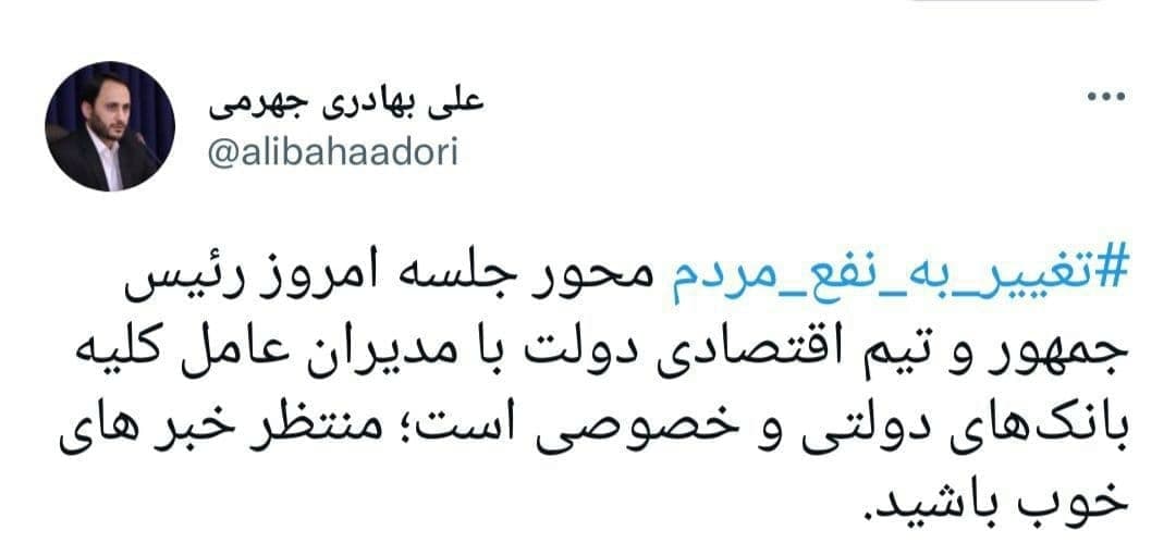 علی بهادری جهرمی در حساب توئیتری خود با اشاره به جلسه رئیسجمهور با تیم اقتصادی دولت نوشت: